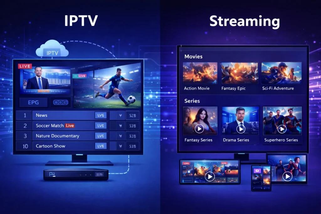 IPTV bietet vor allem den Vorteil von echtem Live-TV. Nutzer können Nachrichtensender, Sportevents und internationale Programme in Echtzeit verfolgen. Zusätzlich enthalten viele IPTV-Angebote Replay-Funktionen, elektronische Programmführer und Mediatheken. Im Vergleich dazu konzentrieren sich Streaming-Dienste meist auf Filme und Serien auf Abruf. IPTV vereint somit lineares Fernsehen und On-Demand-Inhalte in einer einzigen Plattform.